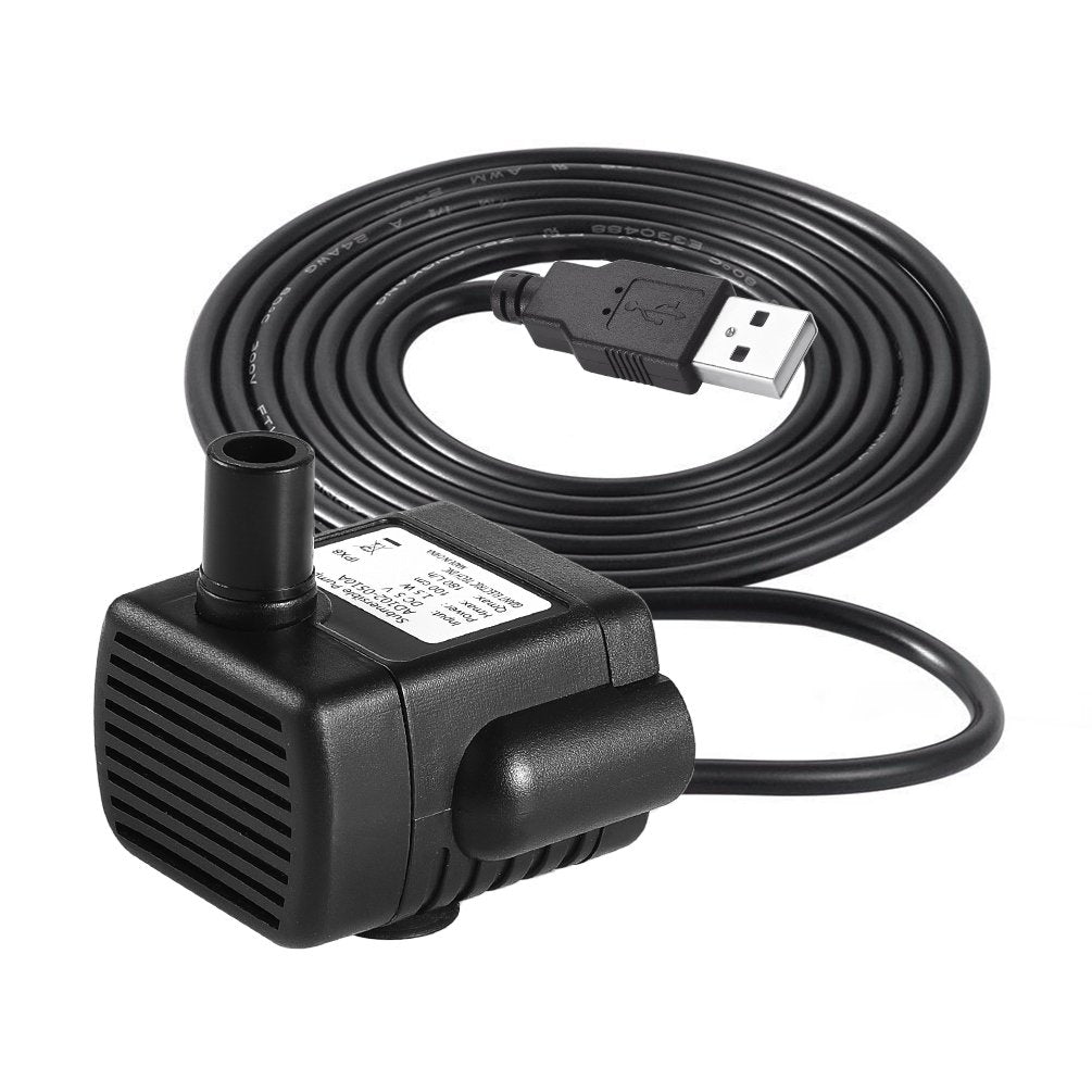 Mini USB Fountain Pump Compact Submersible Pumps Efficient 5V Water Pump for Small Pond, Fish Tank, Long Cord, 180L/H, Black
